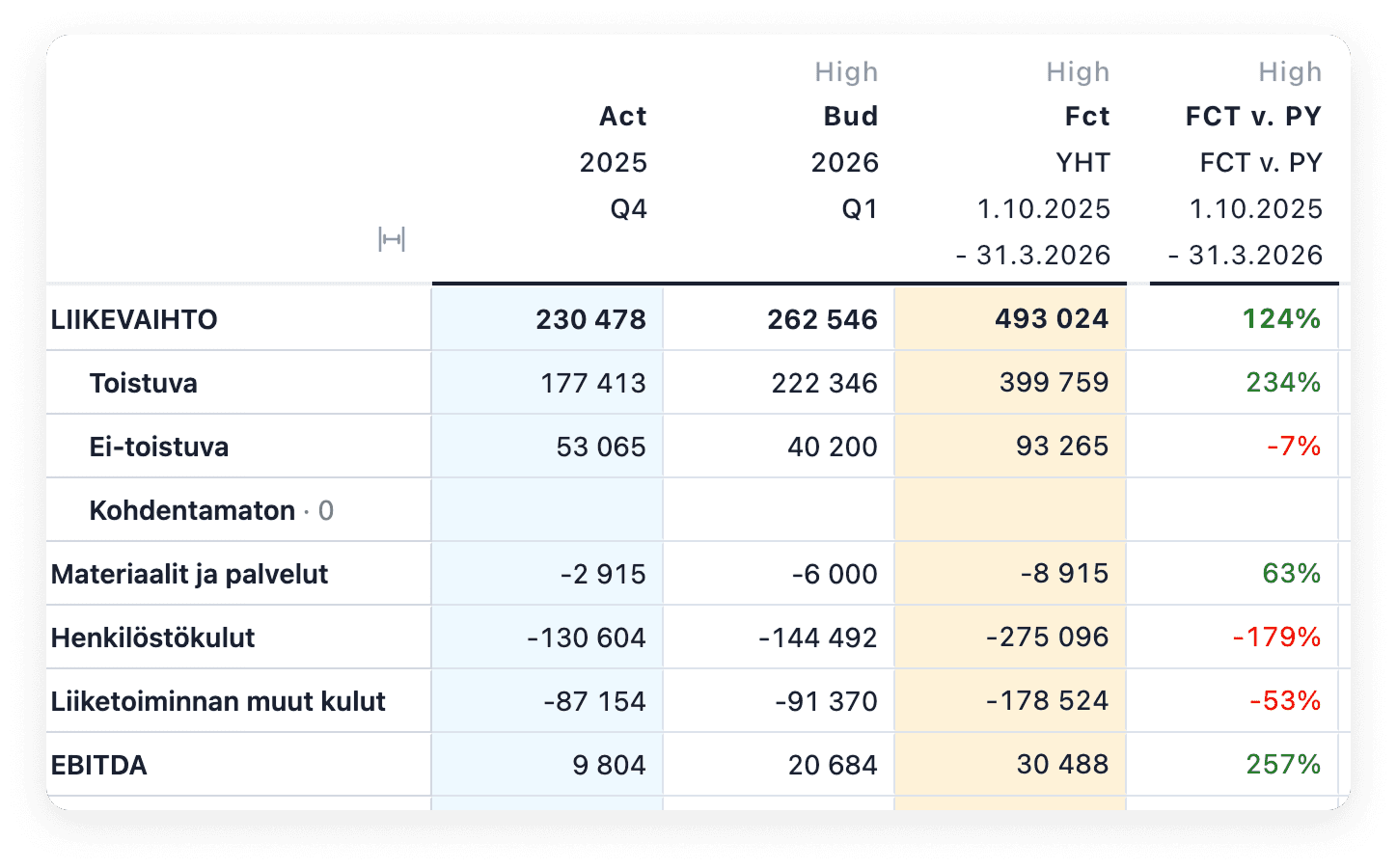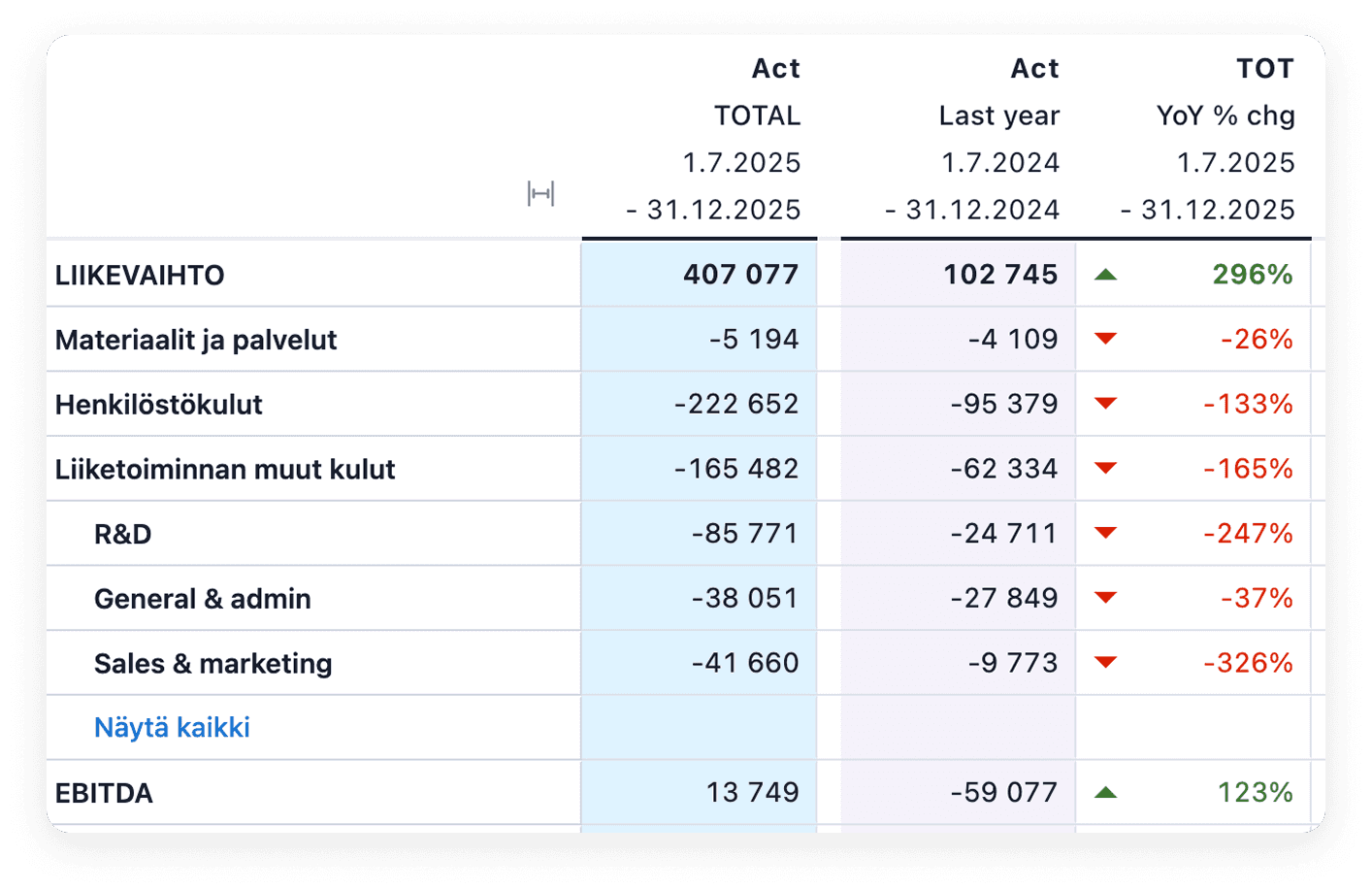Talousennuste toimii myös hyvänä tarkistuslistana kuukausittaiseen talousseurantaan. Month-end closingin yhteydessä toteumaa voidaan verrata ennusteeseen ja nähdä nopeasti, missä liiketoiminta etenee suunnitellusti ja missä on syntynyt poikkeamia.